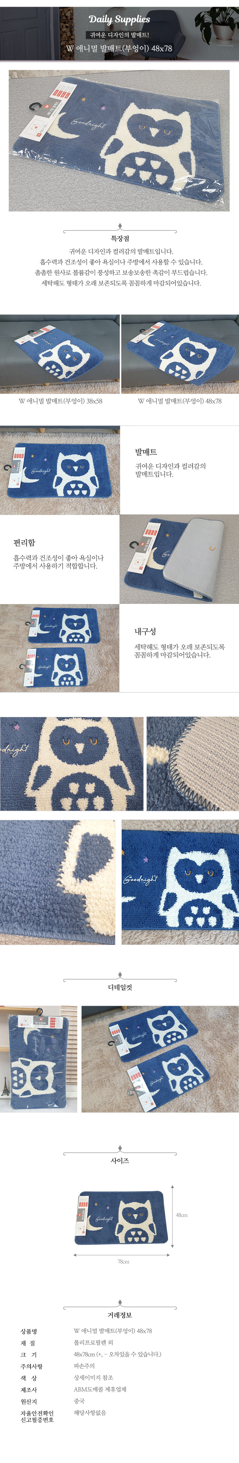 애니멀 발매트(부엉이)대 48x78 이미지/