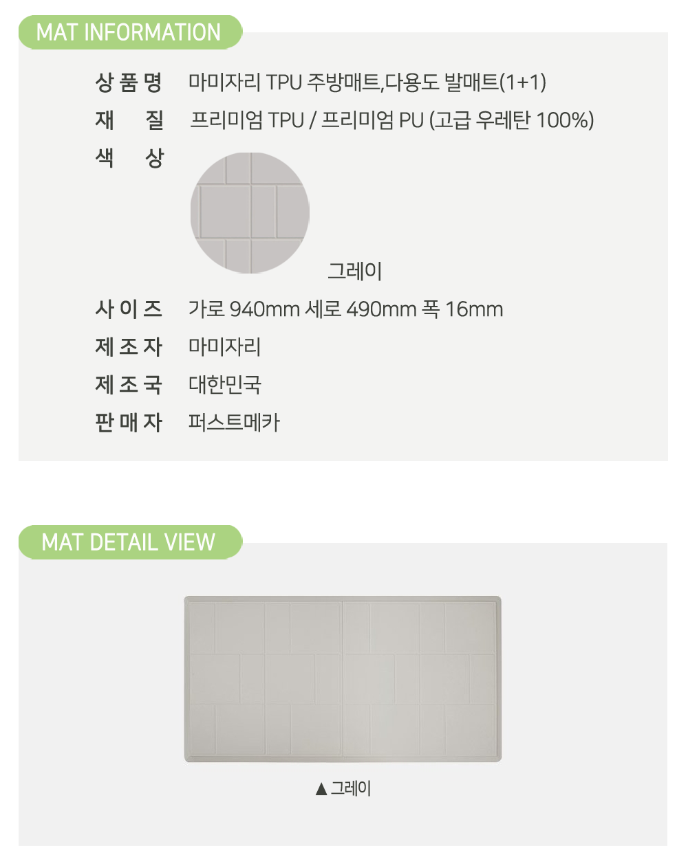 마미자리 TPU주방매트(대) 3가지 색상 1+1 싱크대발판 이미지/