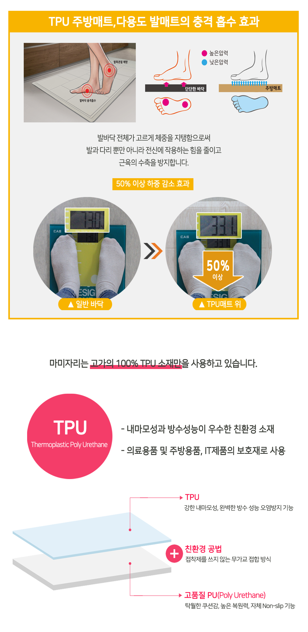 쿠션감과 복원력이 뛰어난 TPU주방매트!