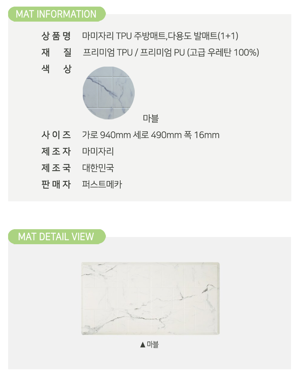 2개 이상의 마블 색상, TPU주방매트를 설치하시면