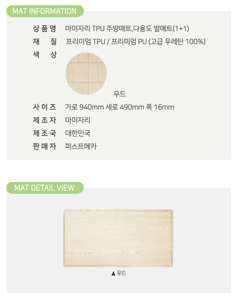 2개 이상의 우드 색상, TPU주방매트를 설치하시면