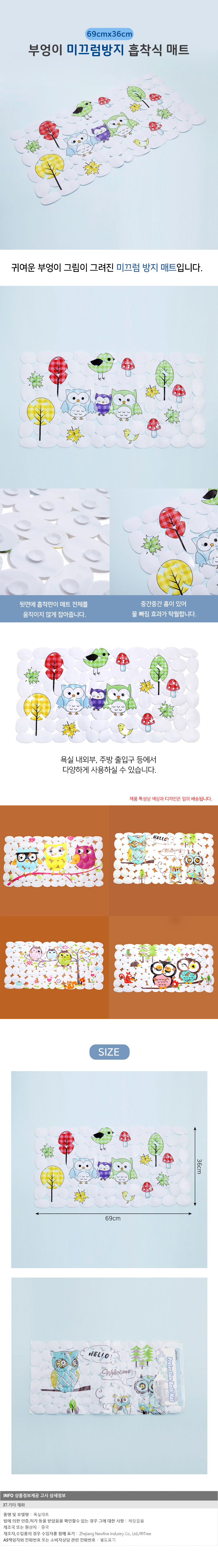 부엉이 미끄럼방지 흡착식 매트(69x36cm)/주방매트