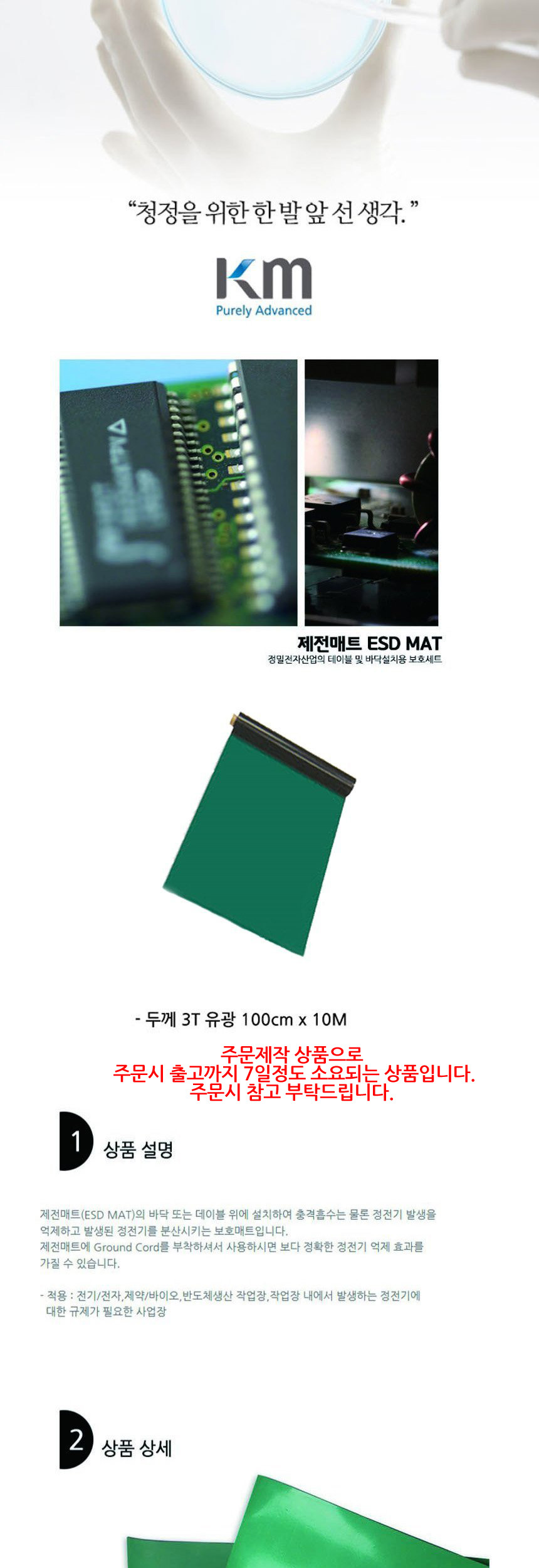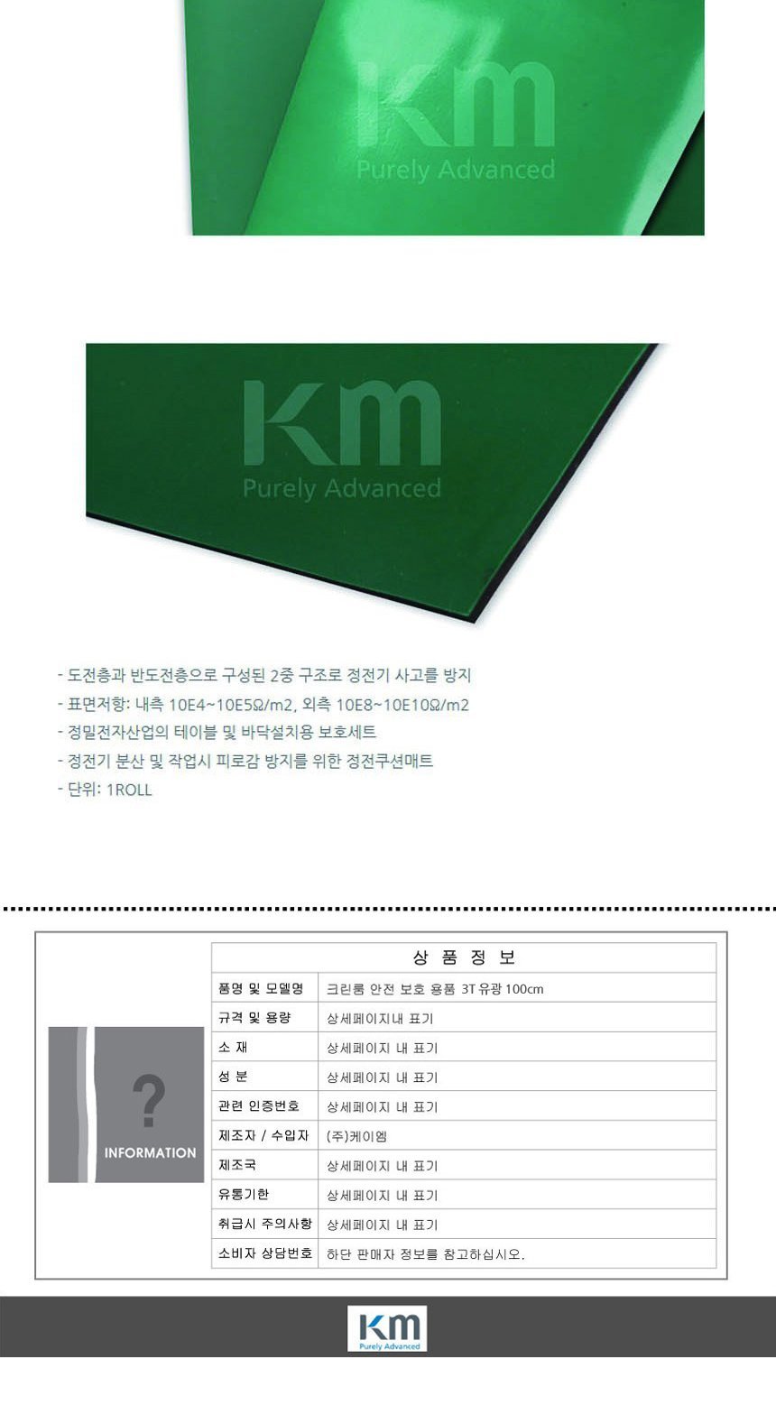 KM 정전기방지 제전매트 ESD MAT 3T 유광 100cm