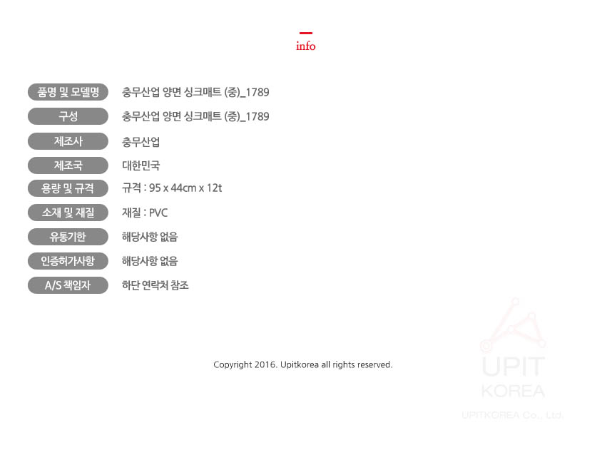 충무산업 양면 싱크매트 (중) 1789 이미지/