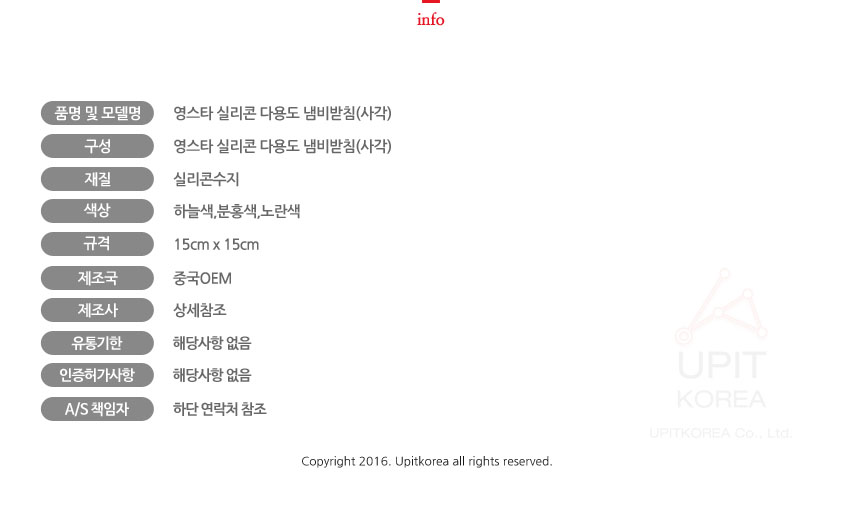 영스타 실리콘 다용도 냄비받침(사각) 이미지/