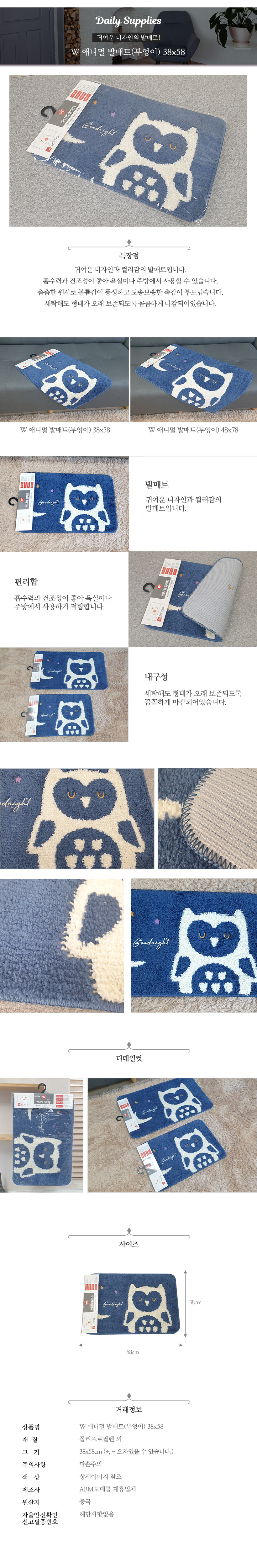 애니멀 발매트(부엉이)소 38x58 주방 욕실 이미지/