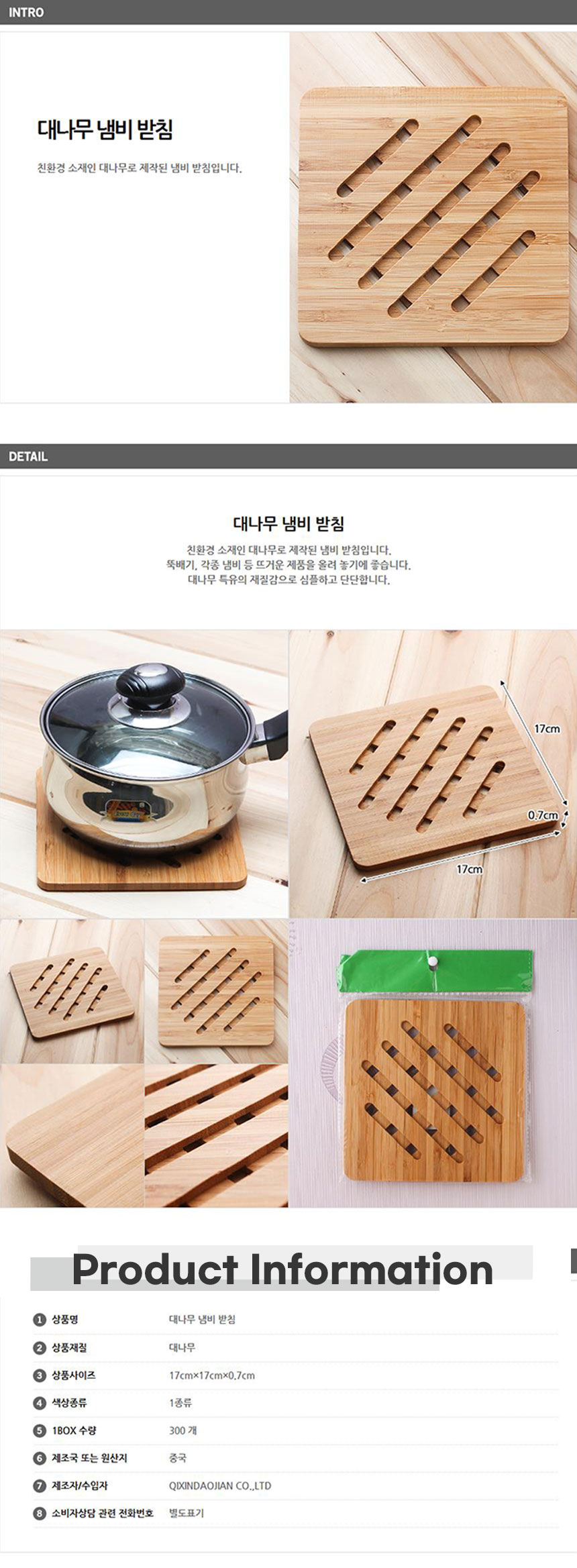 빗금 대나무 냄비받침대 주방소품 모던냄비매트