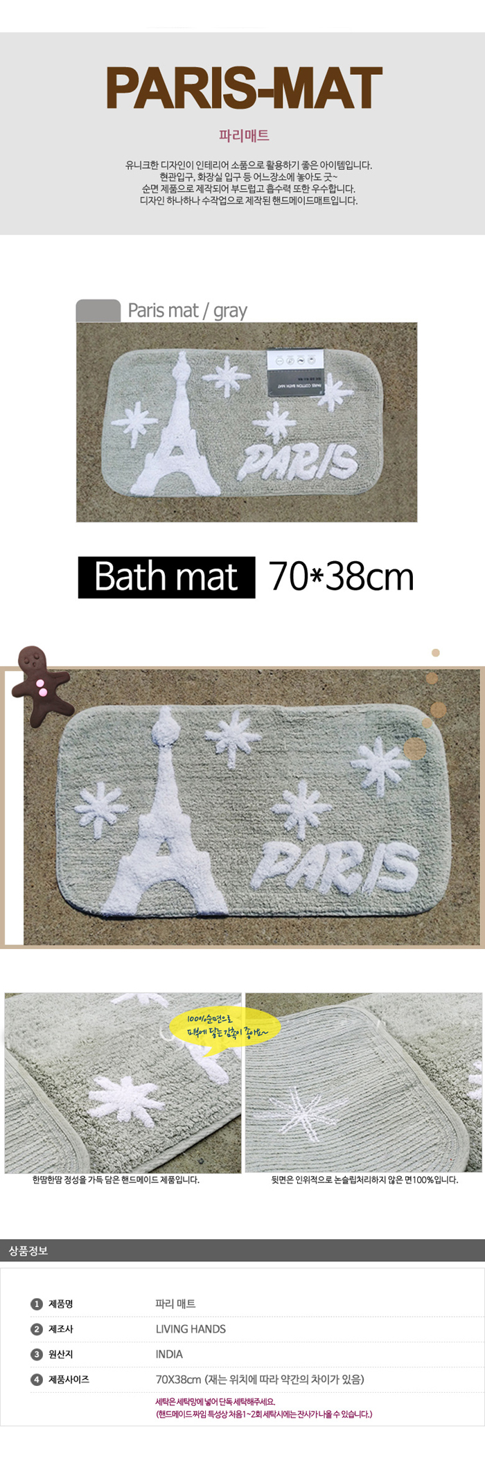 HN 파리매트 70x38 발매트 현관매트 매트 거실매트 주 이미지/