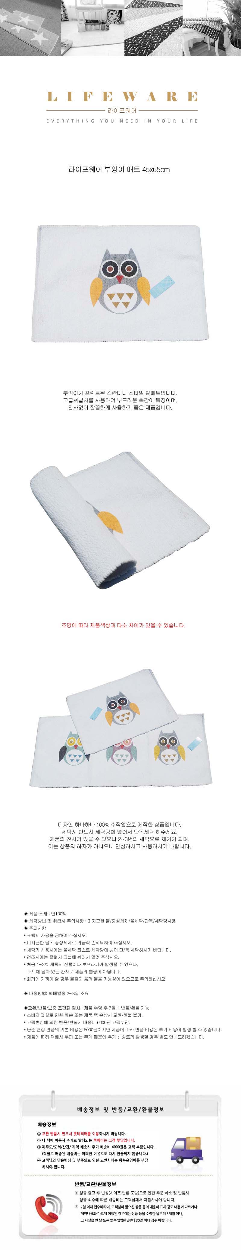 • 품명 및 모델명라이프웨어 부엉이 매트 45x65cm