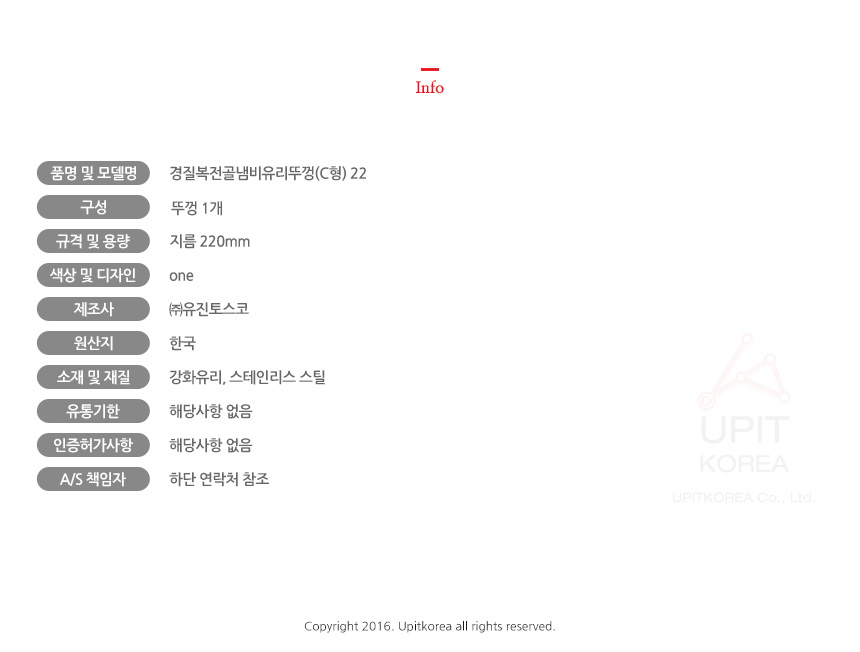 경질복전골냄비유리뚜껑(C형) 22(뚜껑만) 1761 이미지/