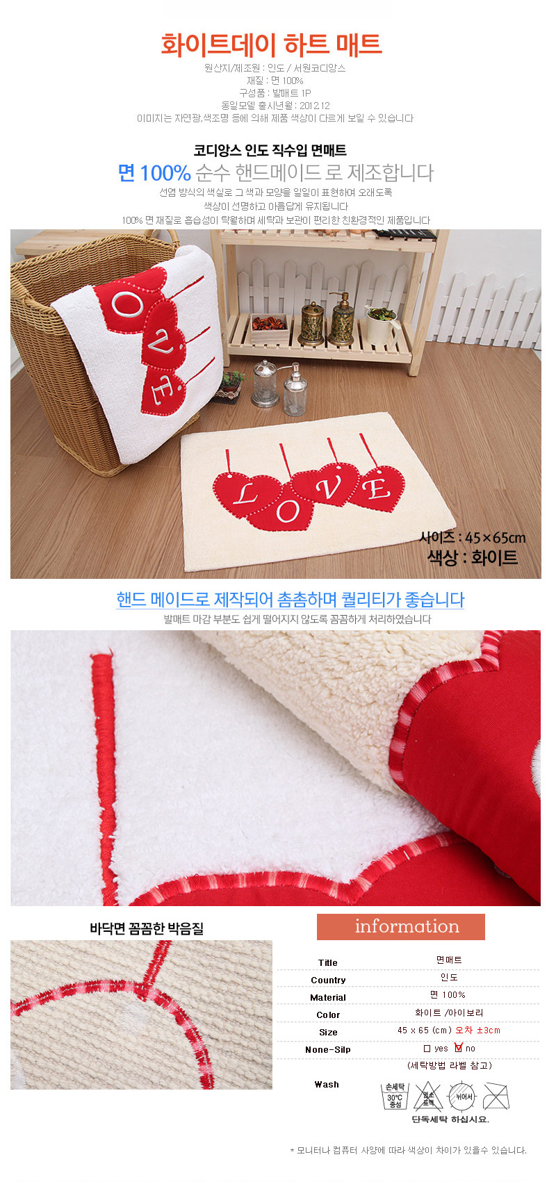 서원코디앙 화이트데이 하트매트 발매트 러그