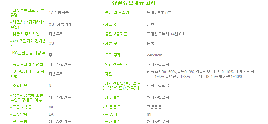 제조자 상품상세설명에 표기