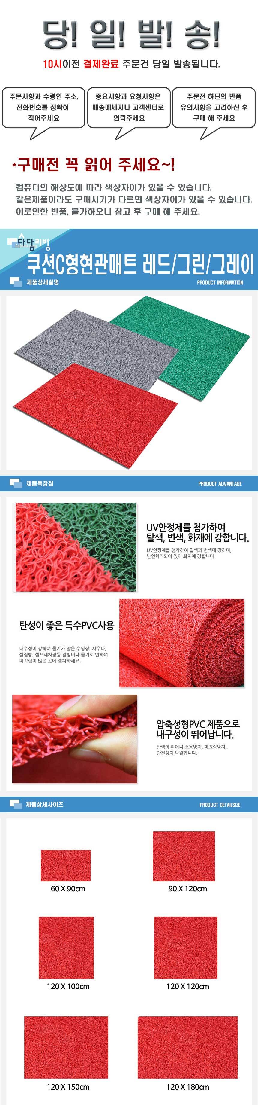 태즈컴퍼니 쿠션C형현관매트/그레이/120x100 입구매트