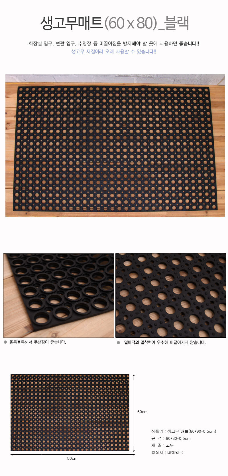 <상품명 : 검정 생고무 매트 60x90cm 1p>
