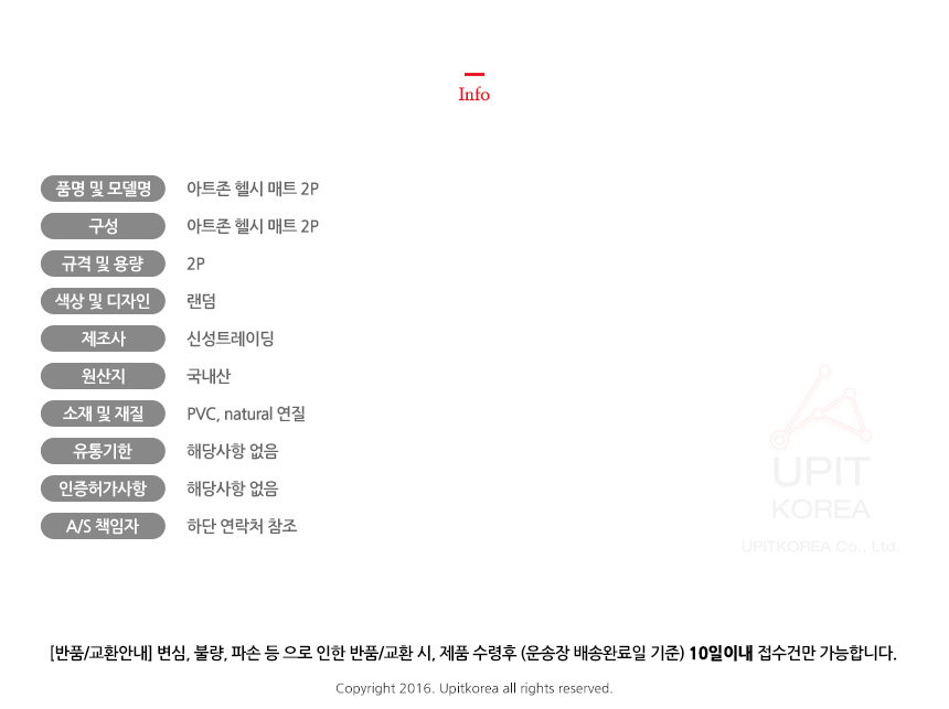 • 초기제품 이상의 경우 동일한 제품으로 1:1 교환원칙, 사용후 제품이상은 A/S를 원칙으로 합니다.