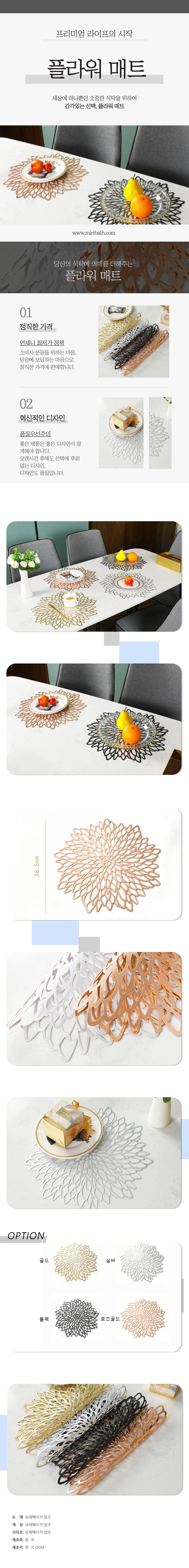 식탁 테이블 플라워 B형 매트 심플 패드 깔개 받침 이미지/