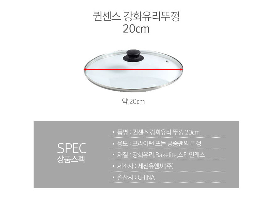 퀸센스 강화유리뚜껑 20cm/ 궁중팬 후라이팬 냄비 뚜껑
