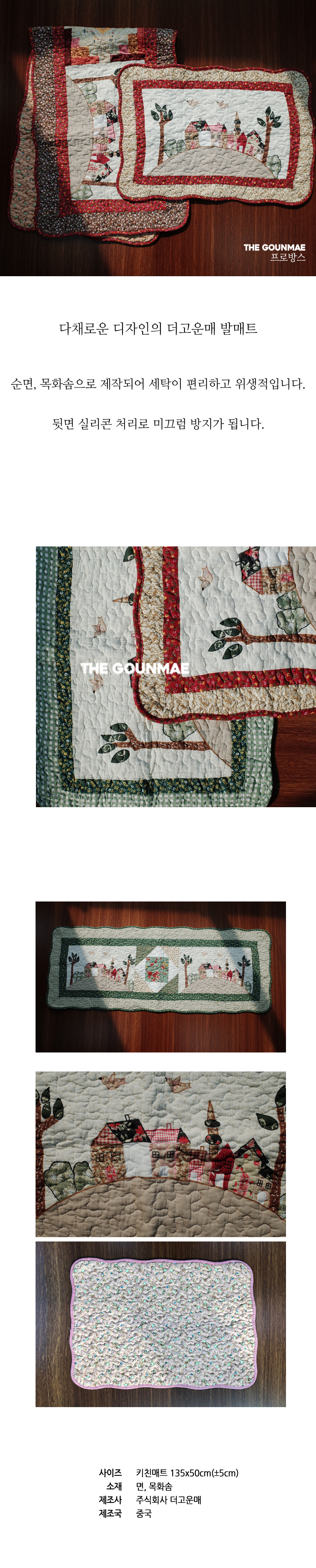 빨아쓰는 순면 퀼트 주방매트 키친매트 프로방스 이미지/