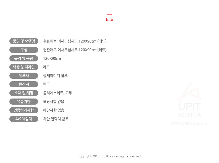 현관매트 어서오십시오 120X90cm (레드) 9011 이미지/