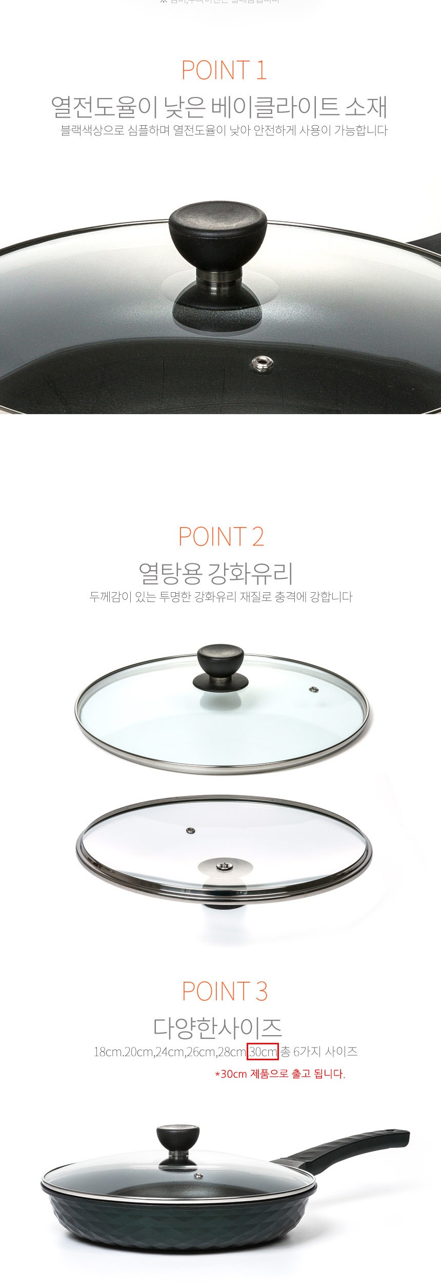 블랙손잡이 강화 유리뚜껑 30cm 이미지/