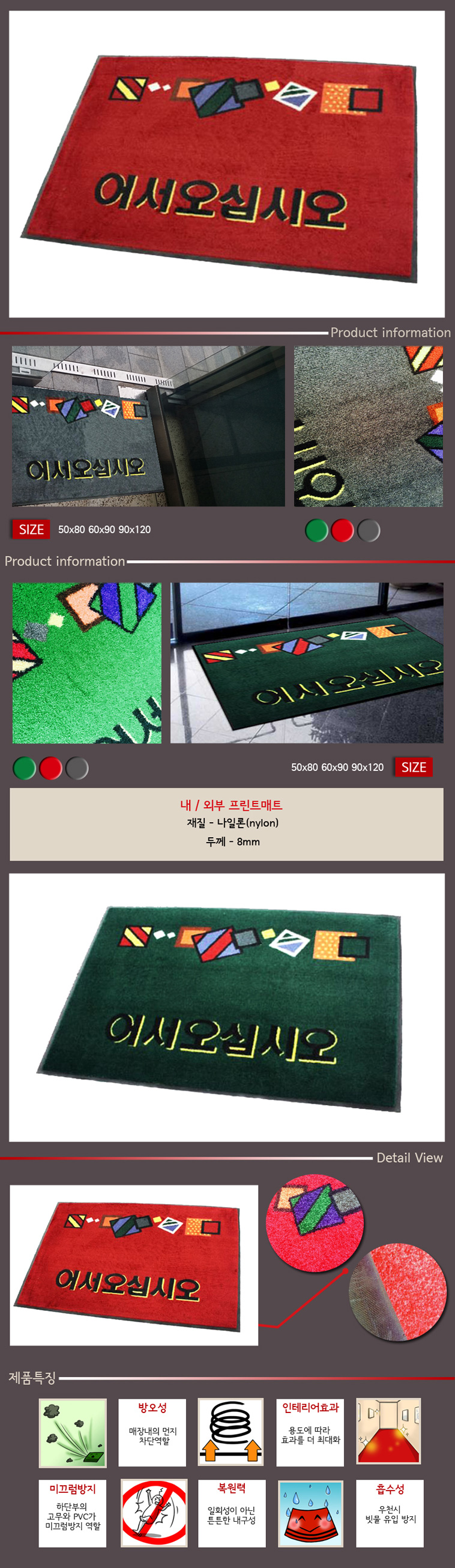 회사 사무실 현관 칼라매트 60X90cm 어서오십시오