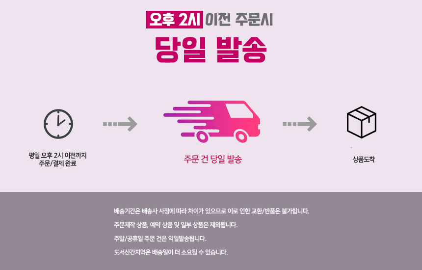 - 주문후 예상 배송기간평일오후2시이전주문시 당일배송