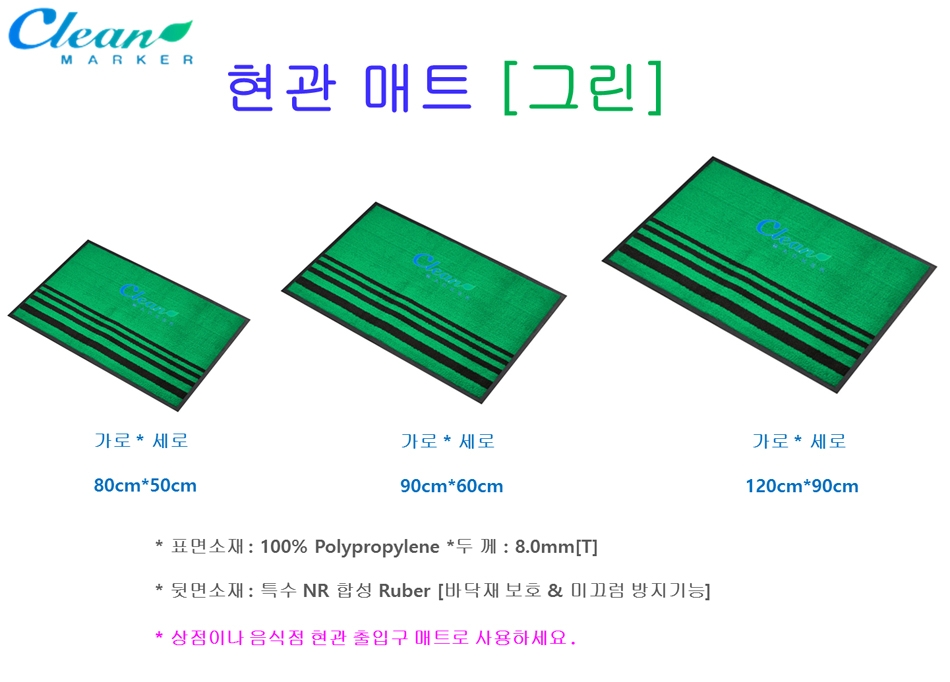 상점 음식점 현관 출입구 매트 그린 90X60cm 이미지/