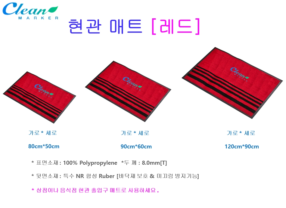 상점 음식점 현관 출입구 매트 레드 90X60cm 이미지/