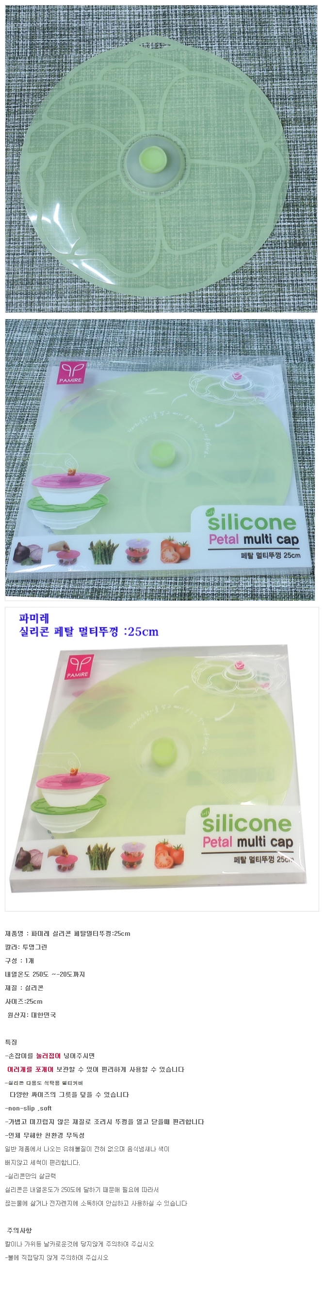 파미레 냄비 뚜껑 후라이팬 덮개 실리콘랩 25cm