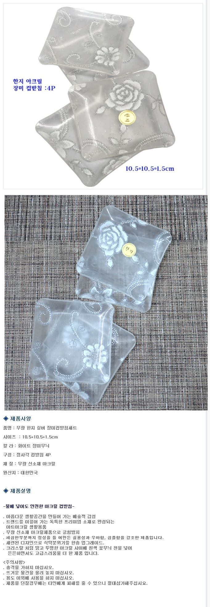 아크릴 컵받침 티코스터 찻잔 홀더 컵받침대 4P 이미지/
