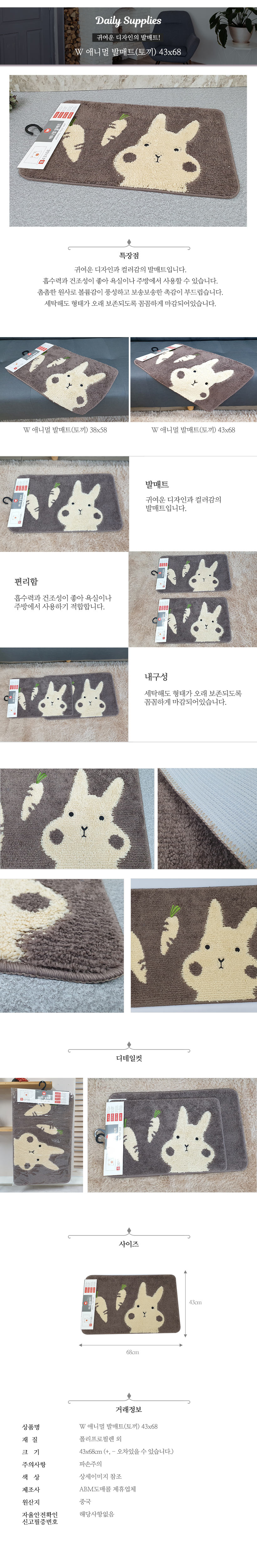 W 애니멀 발매트(토끼)대 43x68 이미지/