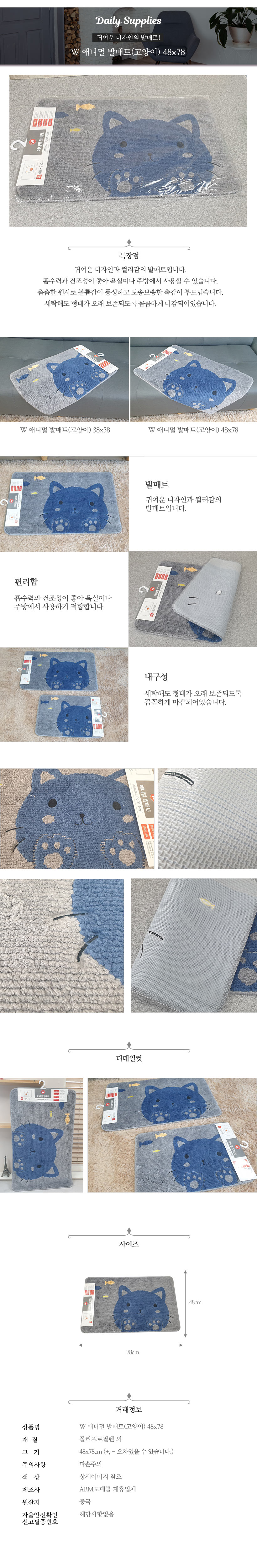 W 애니멀 발매트(고양이)대 48x78 이미지/