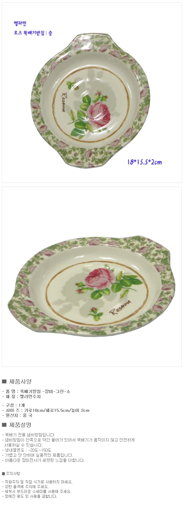 멜라민 냄비 받침대 뚝배기 그릇 받침대 소 그린