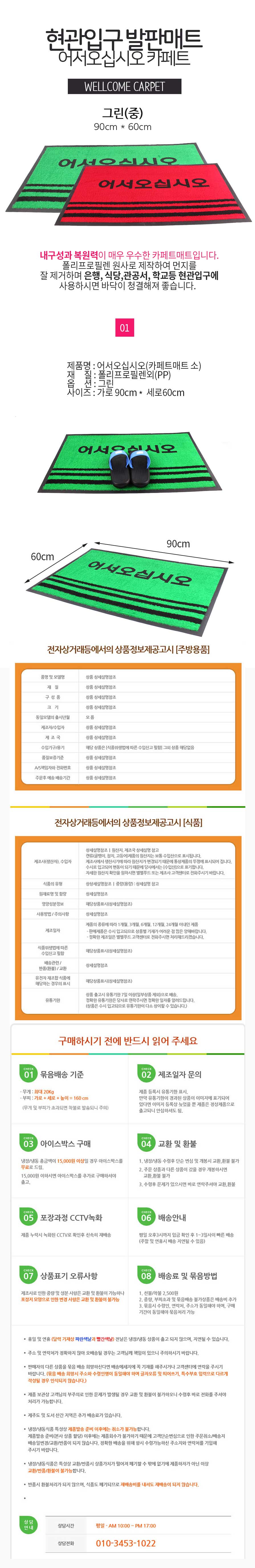 모델명 어서오십시오현관발매트그린(중)90x6
