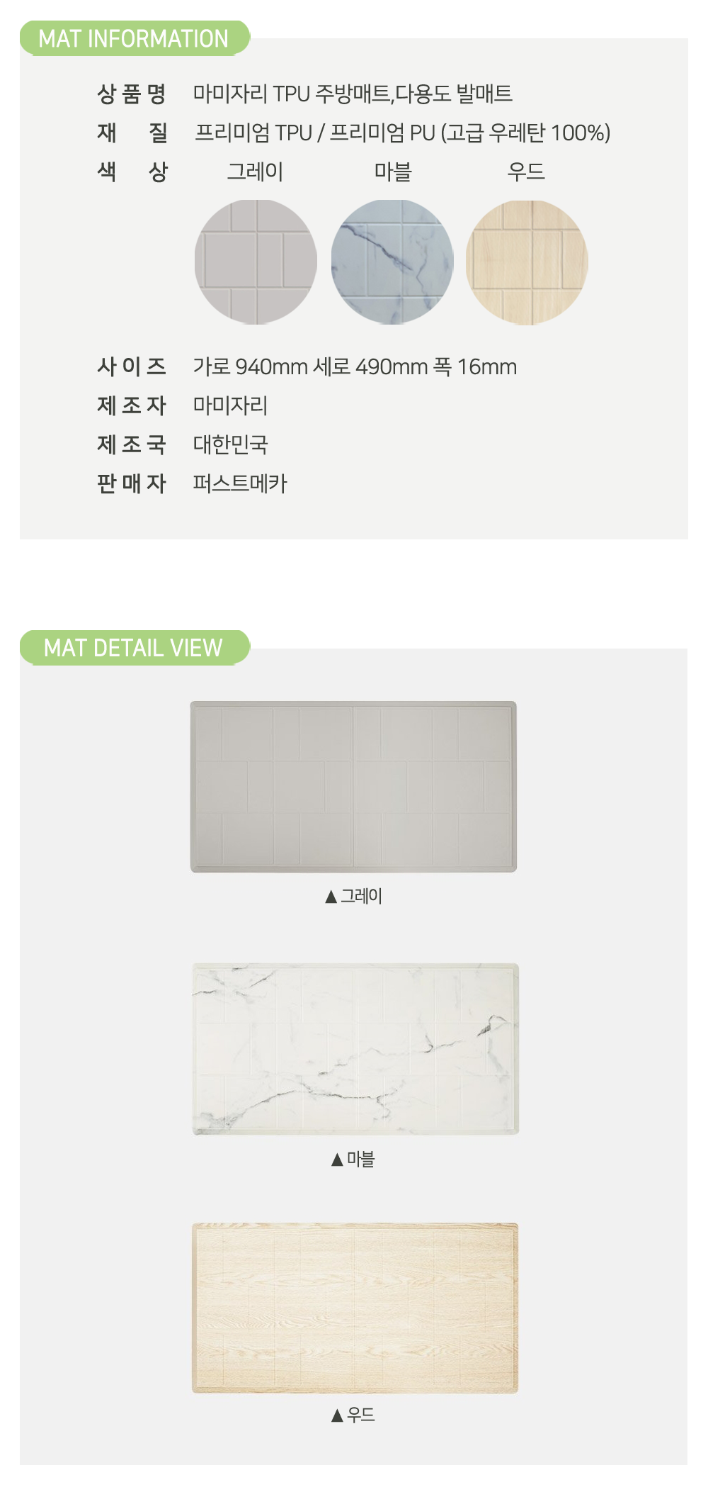 1. 모델명 : TPU주방매트(대)