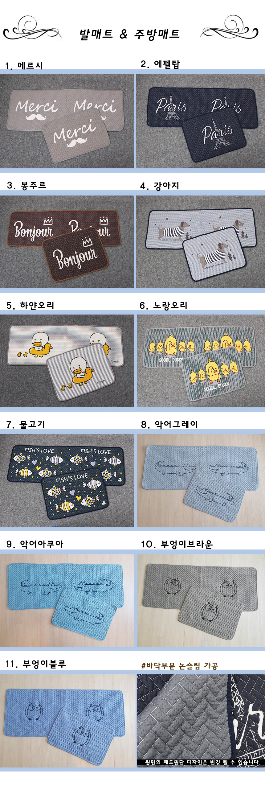 순면퀼팅 북유럽 캐릭터 욕실 현관 발매트/ 거실 싱크대 주방매트