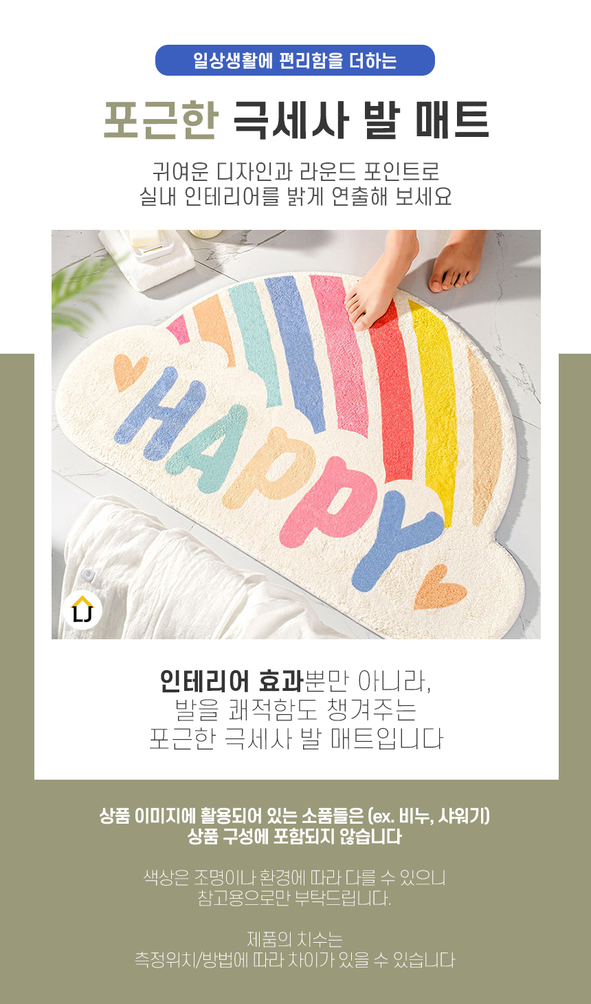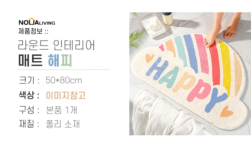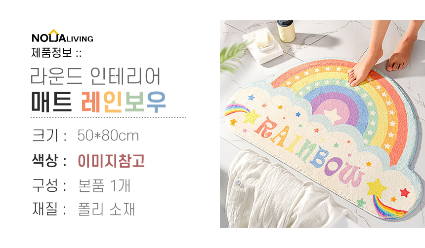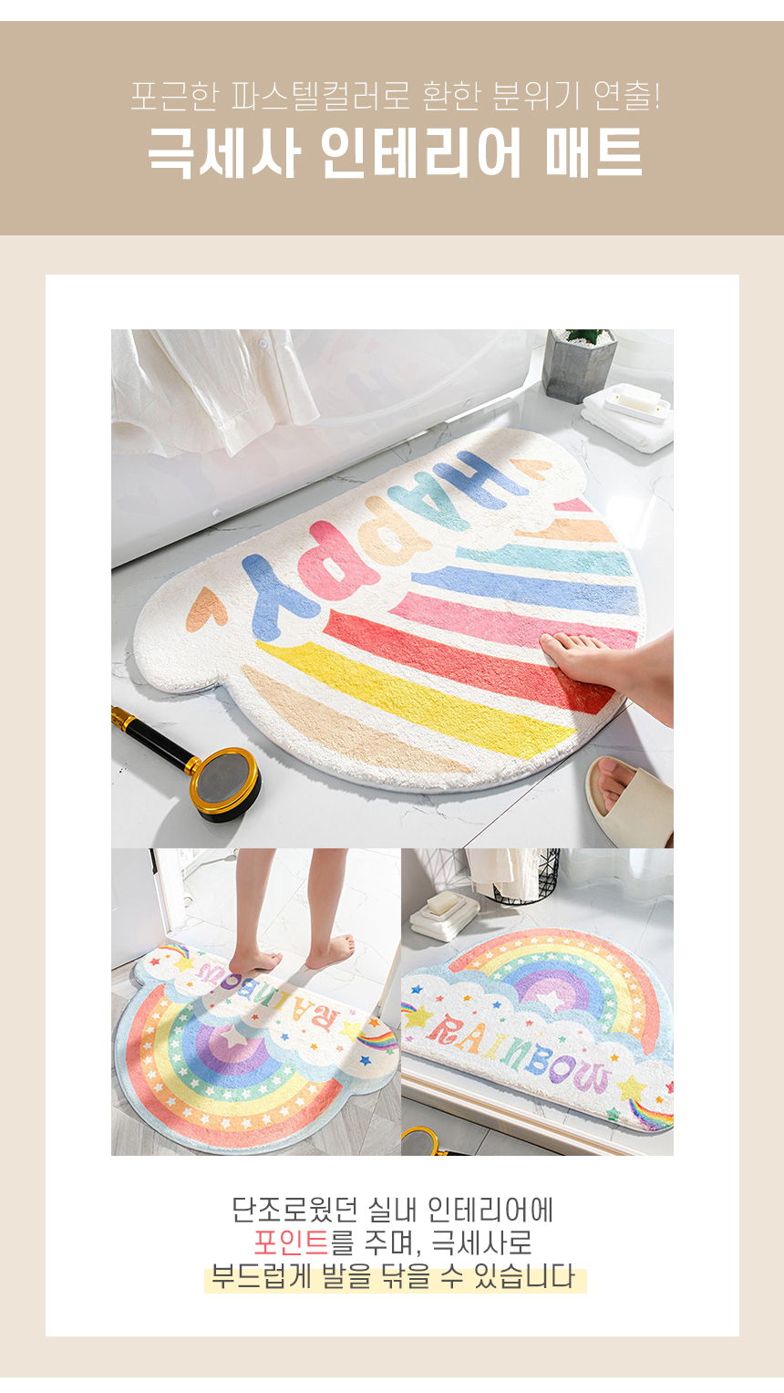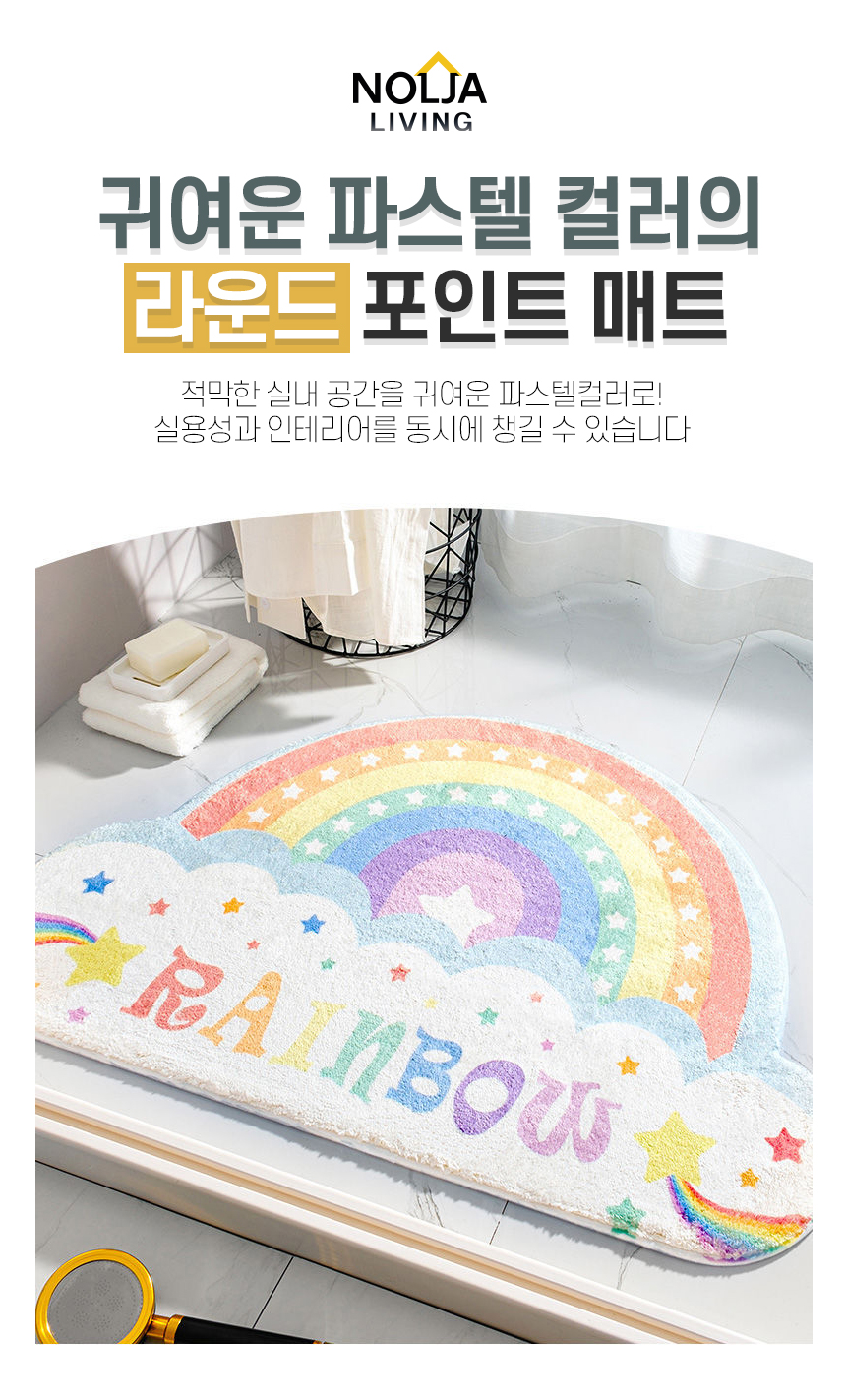 뽀송뽀송 두툼한 라운드 인테리어 매트 화사한 레인보우매트 발매트 주방매트 현관매트