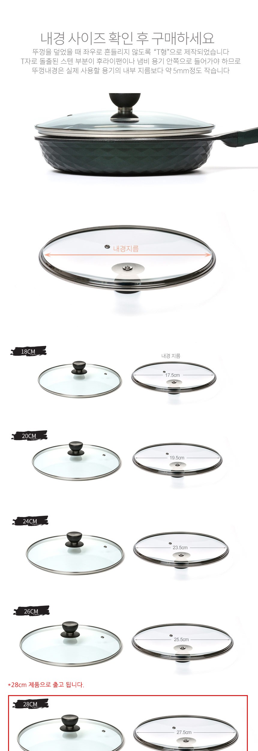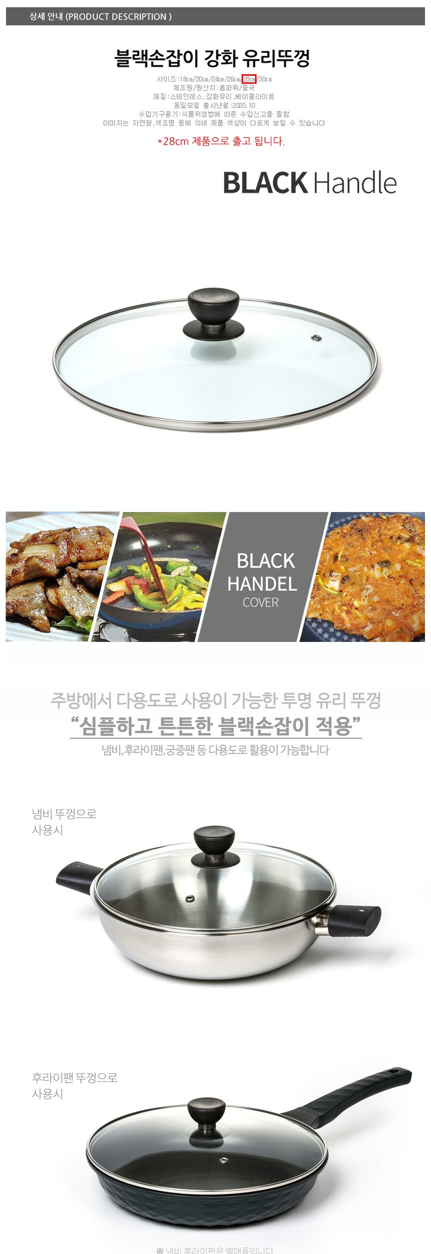 블랙손잡이 강화 유리뚜껑 28cm