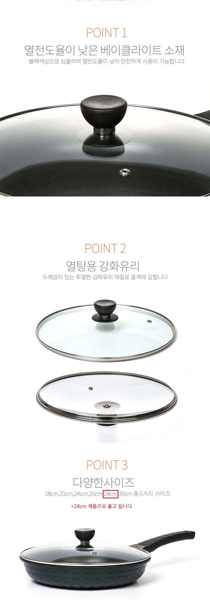 블랙손잡이 강화 유리뚜껑 28cm 이미지/
