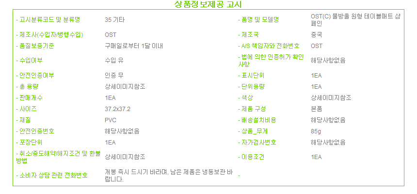 물방울 원형 테이블매트 샴페인 식탁매트 주방매트