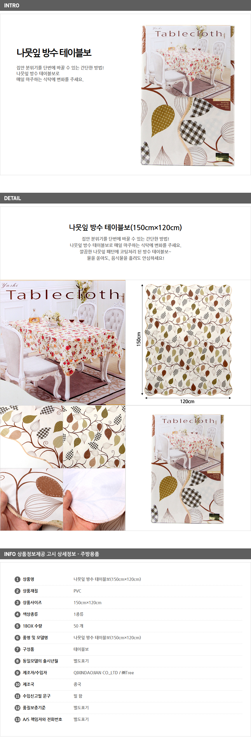 나뭇잎 방수 테이블보(150x120cm) 이미지/