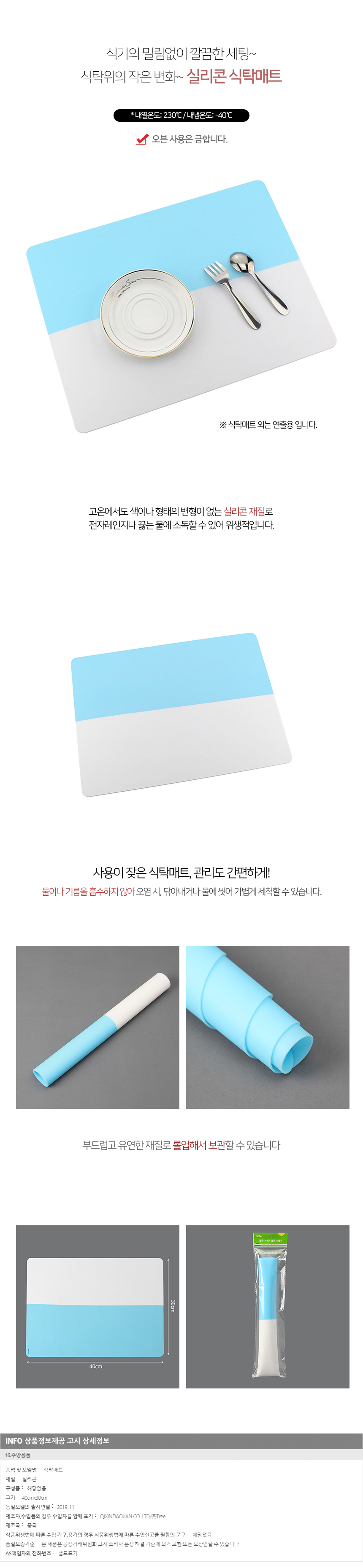 투톤 실리콘 식탁 매트(스카이) 이미지/
