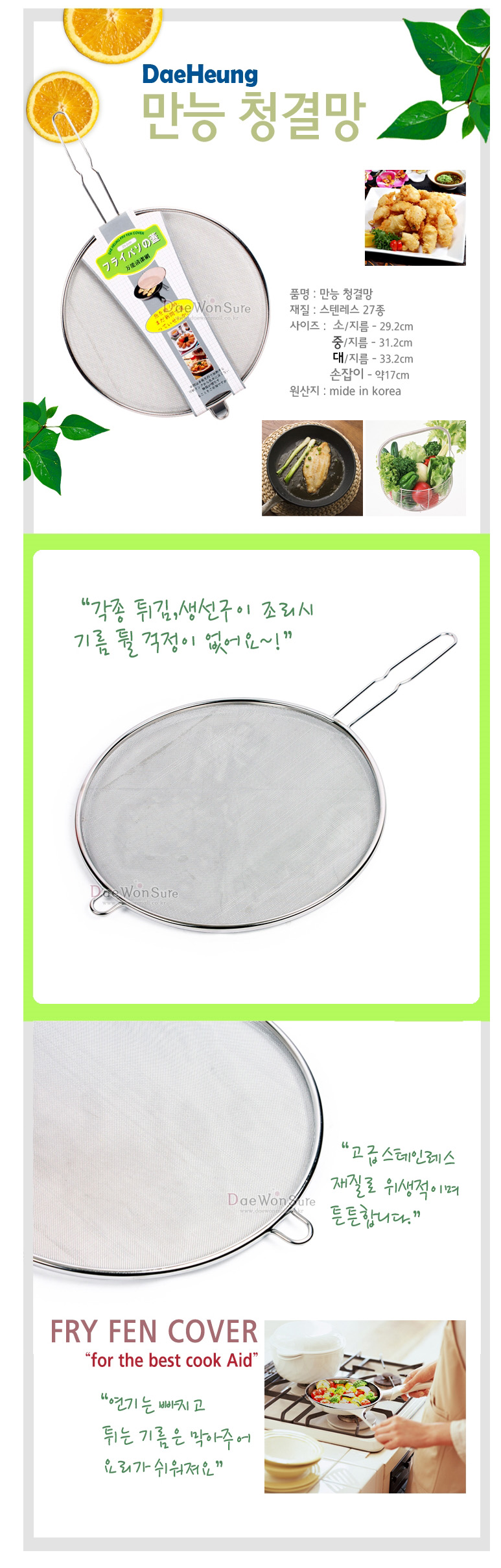 대흥 후라이팬덮게 (소사이즈) 뚜껑 카바 커버 음식 조리도구
