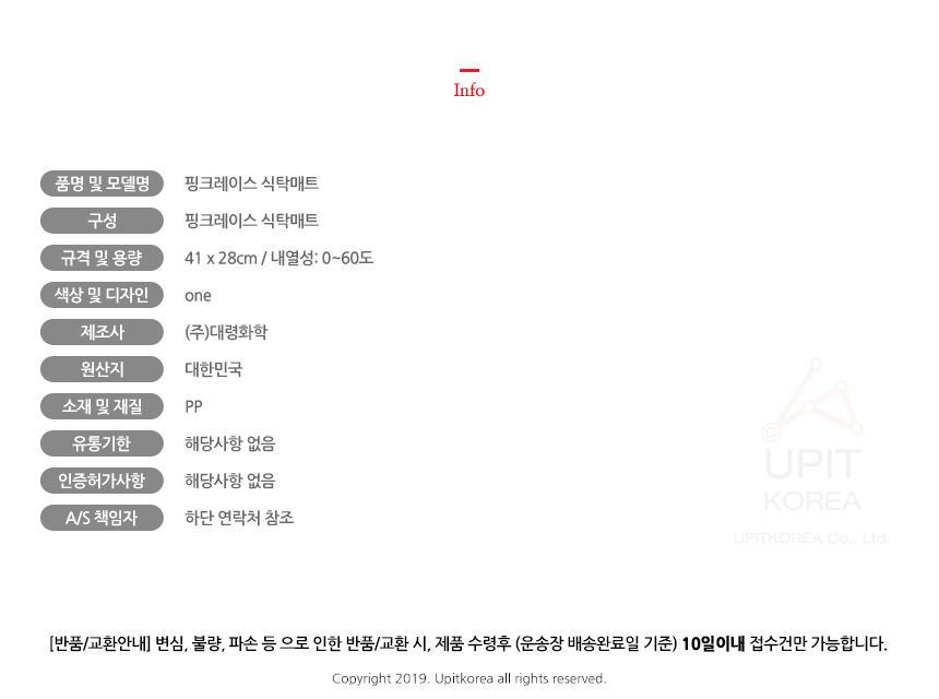 • 초기제품 이상의 경우 동일한 제품으로 1:1 교환원칙, 사용후 제품이상은 A/S를 원칙으로 합니다.
