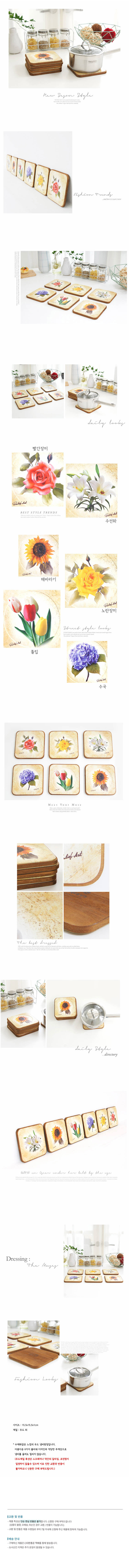 나무 플라워 냄비받침 수채화 스타일 아름다운