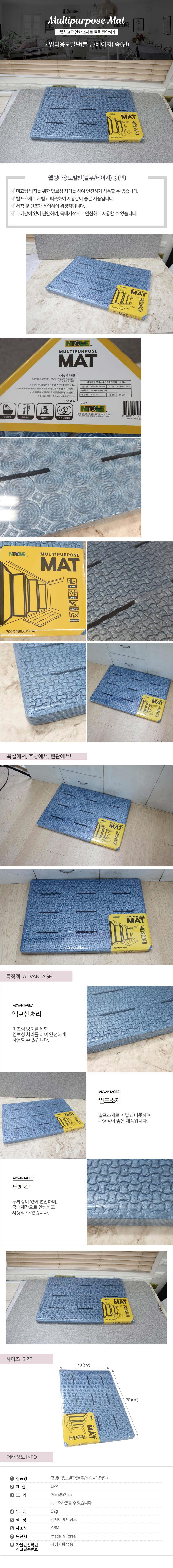 중 민 베이지 욕실용품 웰빙 다용도발판 블루
