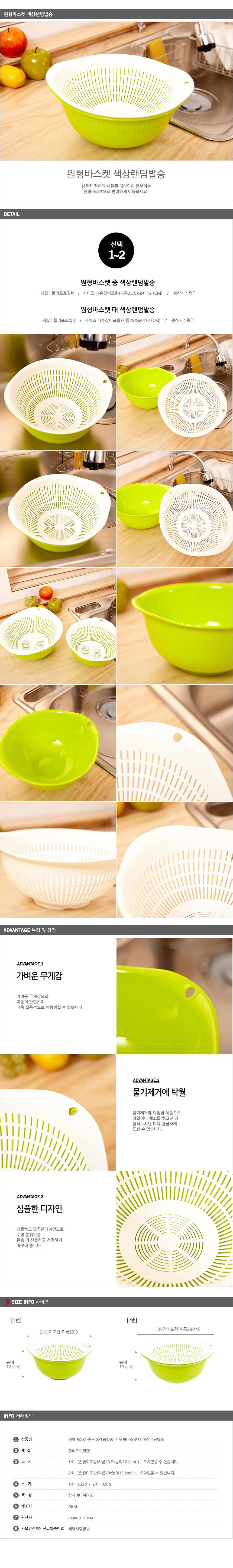 대 원형바스켓 소쿠리 야채탈수기 랜덤발송 채반 이미지/