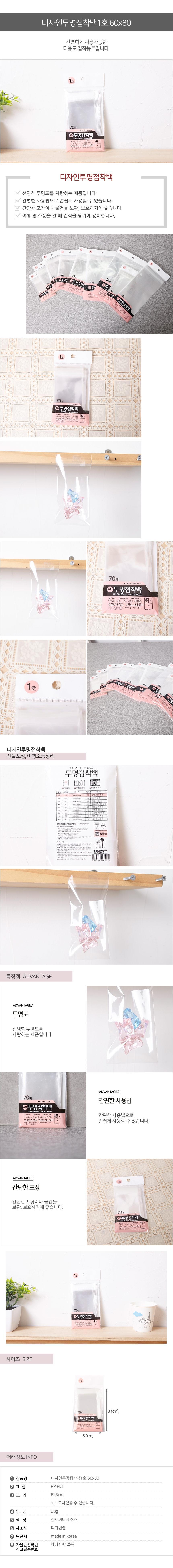 60x80 투명접착백 1호 투명비닐 봉투 디자인 포장비닐 이미지/