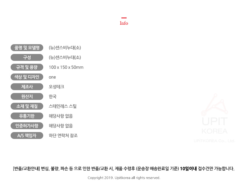 • 초기제품 이상의 경우 동일한 제품으로 1:1 교환원칙, 사용후 제품이상은 A/S를 원칙으로 합니다.