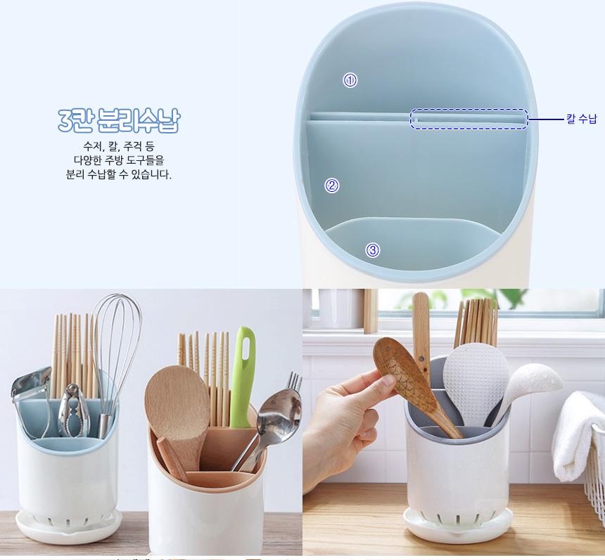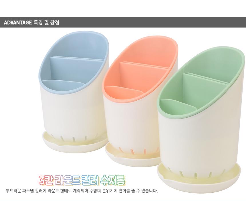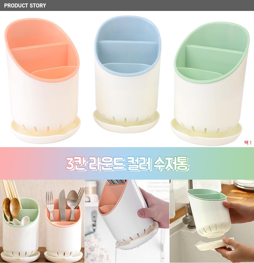 3칸 라운드 컬러 수저통x5개 수저보관 수저보관함 이미지/